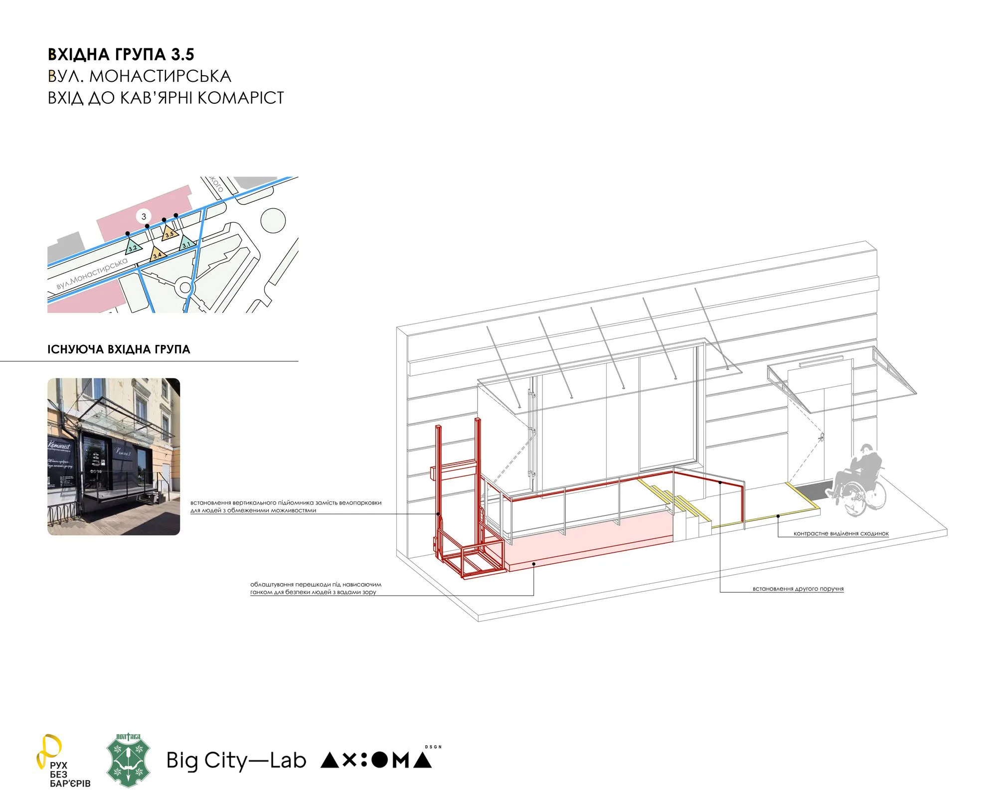 Architect and physical accessibility specialist at Big City Lab Sofia Brem and her team conduct an audit at Chernihiv City Hospital.